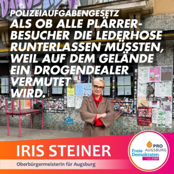 Zur Forderung des BSW, Bundeswehr-Werbung von Augsburger Bussen und Straßenbahnen zu verbannen, erklärt die OB-Kandidatin von FDP und Pro Augsburg, Iris Steiner: Die Forderung des BSW ist mehr als weltfremd. Frieden schafft man nicht, indem man skrupellosen Diktatoren wie Putin zeigt, ...