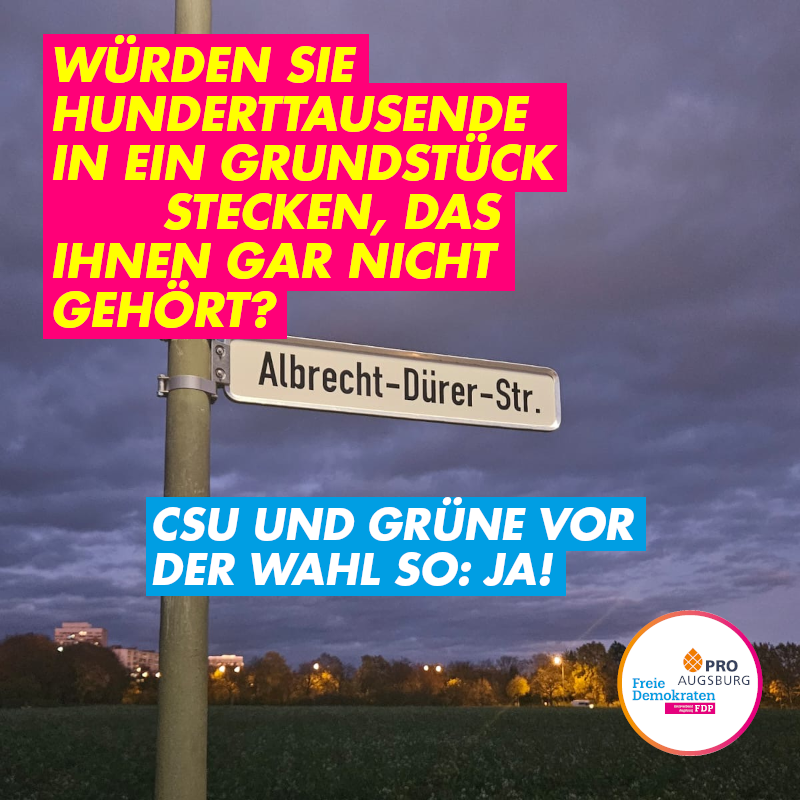 FDP und Pro Augsburg werfen der Rathauskoalition mit Blick auf die dritte staatliche Realschule im Augsburger Osten Wahlkampfmanöver auf Kosten der Stadt vor. Obwohl bislang lediglich rechtsunverbindliche Vorgespräche mit Grundstückseigentümern geführt wurden, wollen CSU und Grüne in der letzten Stadtratssitzung vor den Kommunalwahlen bereits die Planung der auf knapp 19 Millionen Euro veranschlagten Verkehrserschließung sowie die Bauleitplanung auf den Weg bringen. Da diese Planungsausgaben verloren wären, wenn der Grundstückserwerb scheitern sollte, halten FDP und Pro Augsburg das Vorgehen für unverantwortlich.